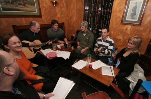 Á fimmtudögum mætir fólk með hljóðfæri á veitingahúsið Highlander að Lækjargötu 10 til að spilað af hjartans list, þá helst keltneska tónlist. Þangað mætir alltaf viss kjarni góðra spilara. Þá sýna sig líka byrjendur og þaulvanir snillingar. Það var fremur kalt úti þann 18. febrúar 2010 þegar ég mætti með upptökutæki. Voru þar mættir fimm hljóðfæraleikarar. Var því fremur fámennt en góðmennt fyrst í stað. Síðar um kvöldið bættist annar við í hópinn sem bæði syngur og flautar lystavel. Verður það efni síðar sett á vefinn. Tekið var upp á Olympus LS10 í 48Khz/24bit. á MMaudio Binaural hljóðnema. Finna má fleiri upptökur frá veitingastaðnum Highlander á þessum vef. Hljóðmyndin tekur 32 mínútur í spilun.