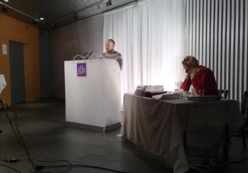 Ég mætti í Borgarleikhúsið á laugardagskvöldi u.þ.b. 6 klukkustundum áður en lestri lauk. Nokkrir áheyrendur voru á staðnum og má heyra þá flissa á völdum stöðum í lestrinum og vera á rápi. Þá má heyra í bakgrunni tónlist frá yfirstandandi leiksýningu. Sá sem fyrst les í þessari hljóðmynd er Hallur Ingþórsson síðan tekur Jón Páll við. Upplesturinn er fremur gjallandi. Stafar það af því að lesturinn var magnaður fram í hátalara. Hefst hljóðmyndin á því að ég geng utan frá andyri leikhússins inn í herbergið þar sem lesturinn fór framm. Staldra þar við í 24 mínútur og geng þaðan út aftur.
