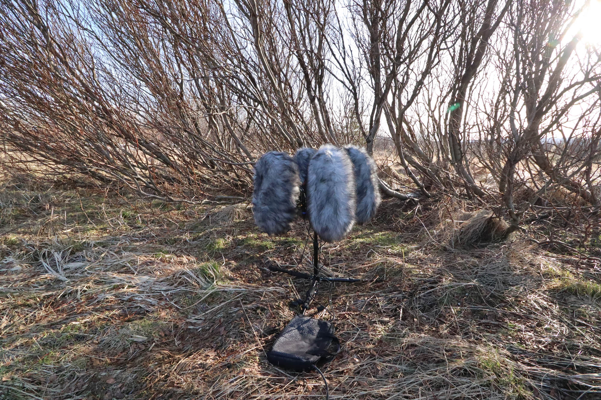 Nothing interesting was audible until in the early morning, about half hour before sunrise, when two Rock Ptarmigan started to „sing“. First in distance, but suddenly, maybe because of curiosity, they flied closer to the microphones and walked around the rig. The following recording is actually this moment.
