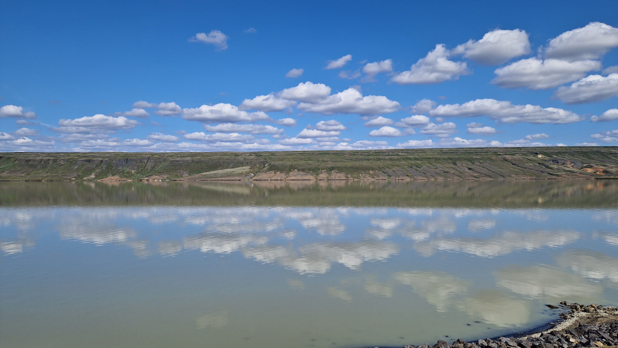 In the morning when I was leaving, it was sunny, calm and very hot, in the Icelandic way. The sight over the mirror smooth lagoon made me stop the car and enjoy the view. The recorders were ready and connected in the car, so I quickly set them up by the reservoir and took a short walk while they were recording.