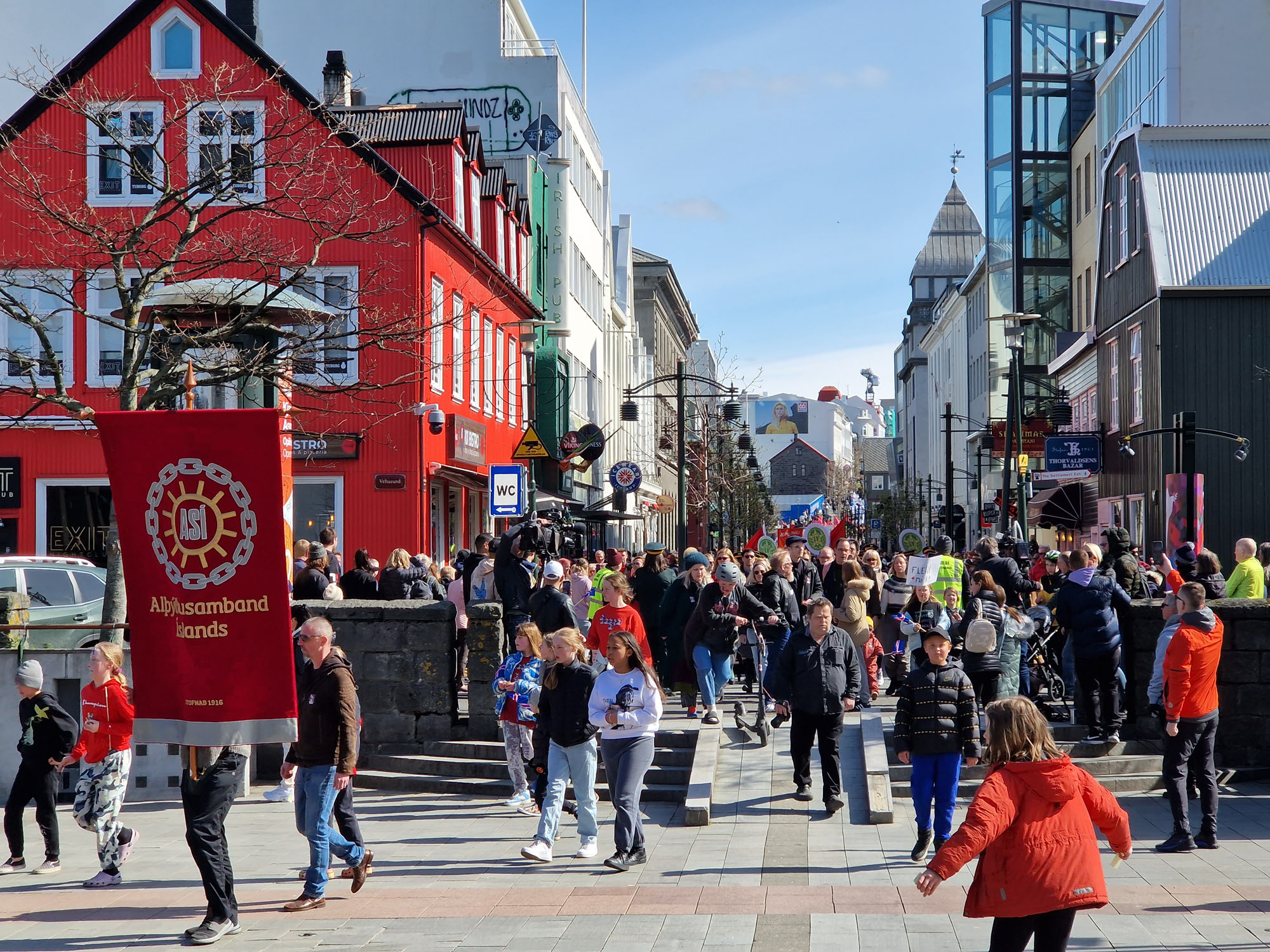 On Labor Day earlier this month, I went down to the center of Reykjavík to record human life and the traditional program on this great day. Instead of going on a mass march through the streets of the city, I went straight down to Hallærisplan square and waited for the marchers and brass bands..